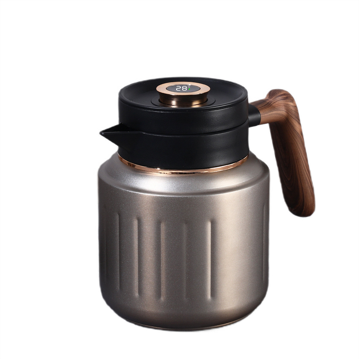 Чайник-термос Yiwu HP-14-51G, 1л із заварником та датчиком температури, сірий